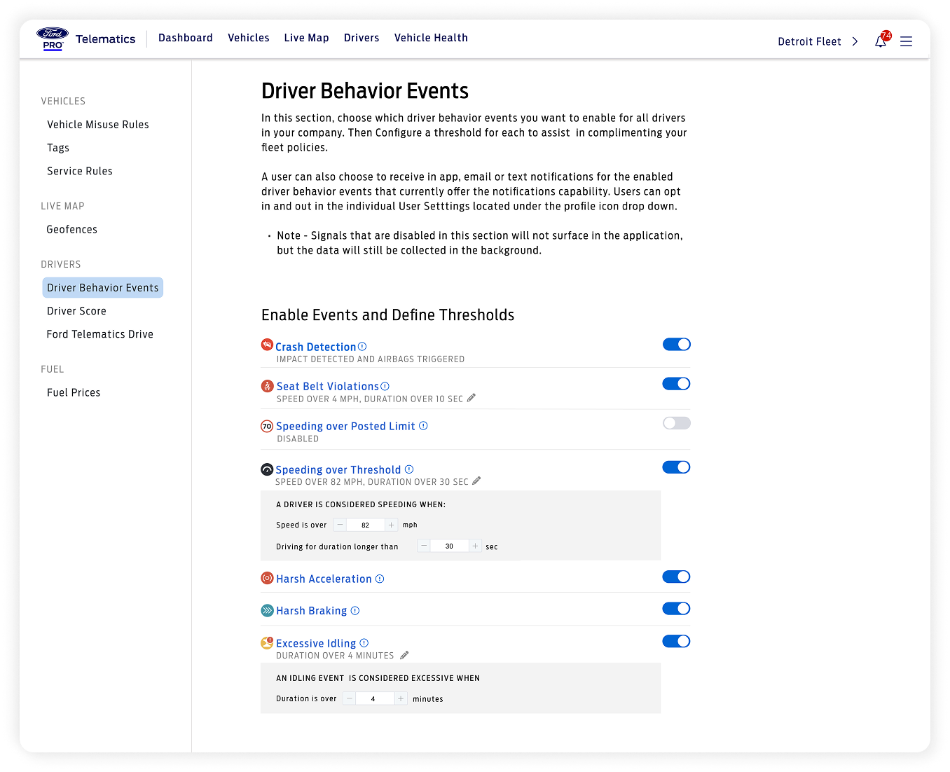 Empower fleet managers to proactively manage driver safety through clear, contextual, and trustworthy behavior insights — while supporting Ford Pro’s global vision for connected services growth.